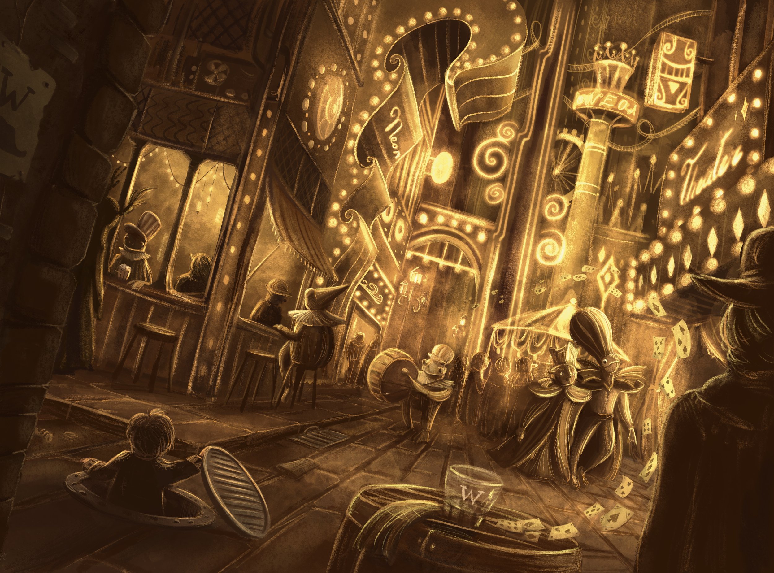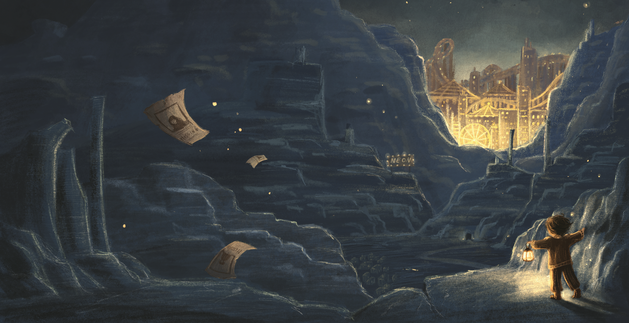 When Mateo’s friend vanishes in the dead of night, whisked away by a shadowy figure in a gilded carriage, he must leave the quiet safety of the Oaks behind. In the streets of Neon, nothing is as it seems: magic hides in the flicker, danger wears a smile, and every shadow has a story to tell.
